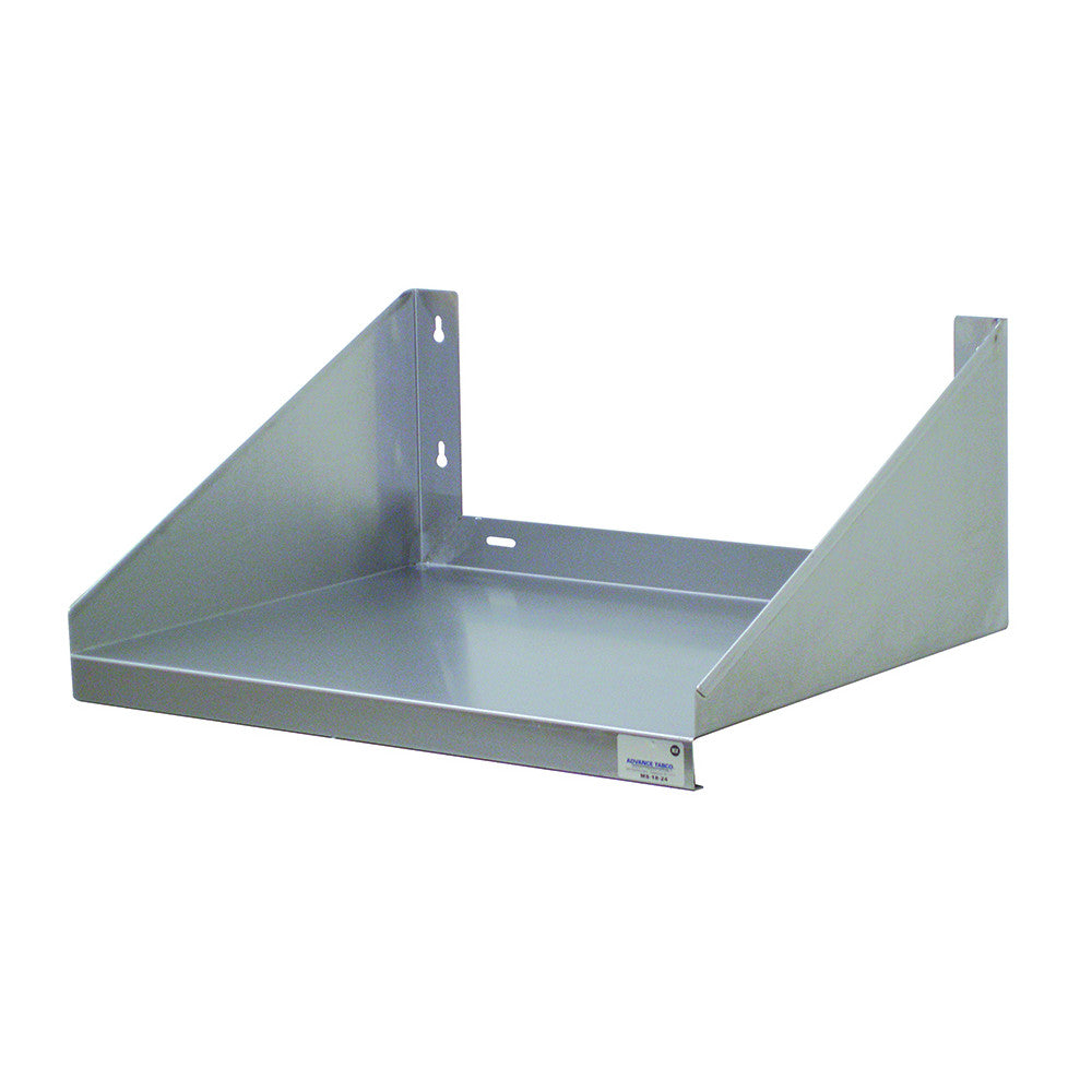The Advance Tabco MS-18-24-EC wall mounted microwave shelf is perfect for space saving almost anywhere in your kitchen. It is all TIG welded, with exposed surfaces polished to a satin finish. It is constructed from 18 gauge type 430 stainless steel.