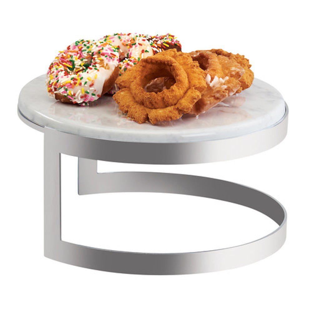 The Cal-Mil 3680-126-81M is an individual ashwood display riser. It has a round design and has a removable faux marble melamine top. The base is made of stainless steel. The 3680-126-81M has a chrome finish.