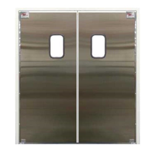 Providing a barrier between customer areas and commercial kitchens, warehouses, and other such areas, the Curtron SPD-30-SS-DBL-9684 is a Service-Pro Series 30 Swing Door. It has an 18 gauge stainless steel exterior with a 0.750" exterior grade wood core. It has two 48" x 84" door panels and two 9" x 14" clear windows. The SPD-30-SS-DBL-9684 uses a hinged assembly and bottom pin. It does not have a kickplate or impact plate.