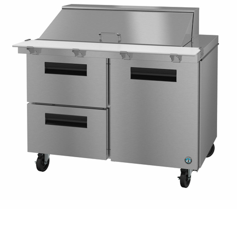 Hoshizaki's SR48B-18MD2 is a mega top reach-in refrigerator. It has a stainless steel exterior front, sides, top and interior sides, back and floor. This provides it with increased durability and makes it easy to clean. The cabinet, doors, and drawers have been insulated with 2” CFC free, foamed in place polyurethane.