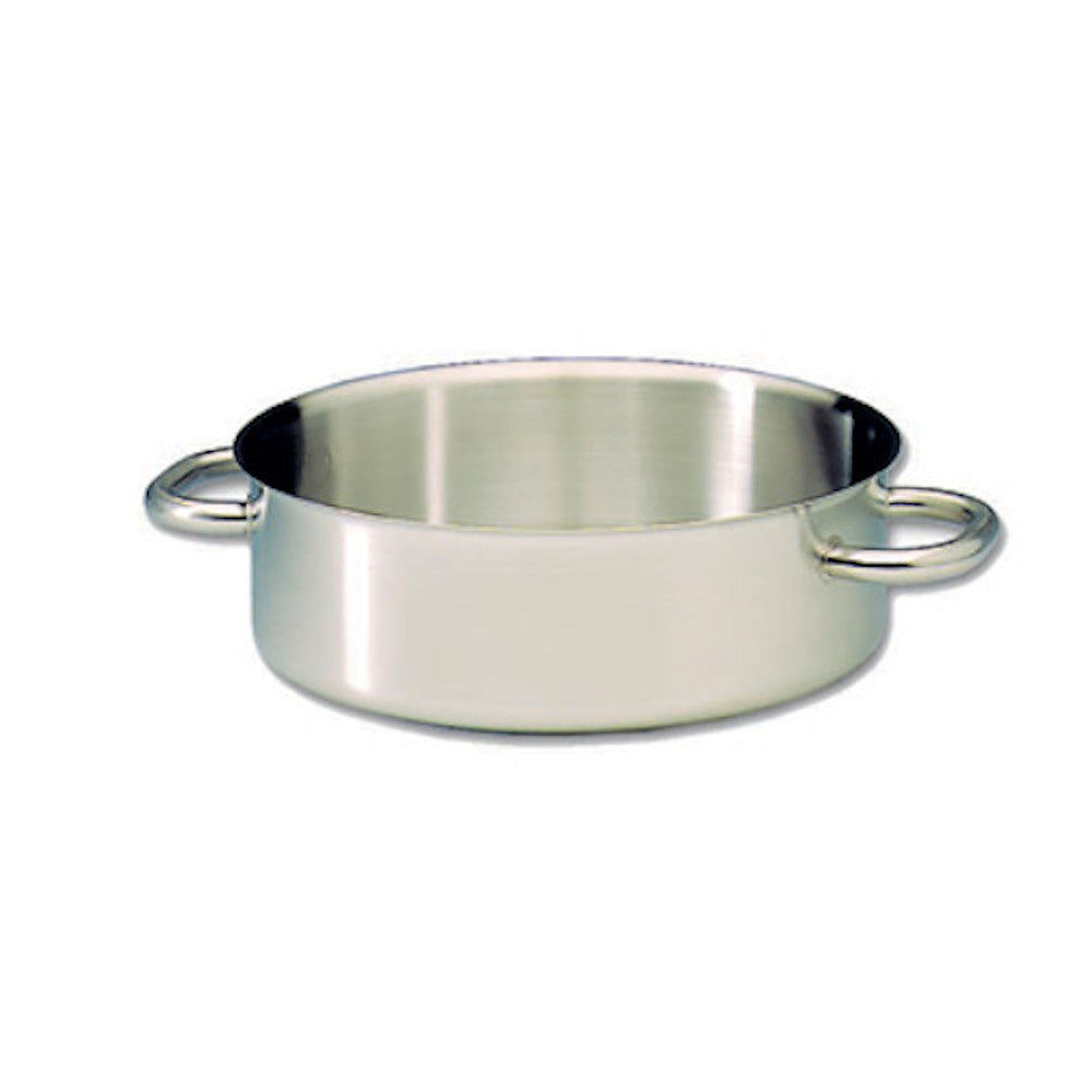 Matfer's 697050 Bourgeat Excellence Brazier Pan is suitable for gas, electric, ceramic, halogen, and induction hobs. Its stainless steel body gives a gorgeous appearance. The reinforced non-drip edge and unbreakable annular weld give it the durability to last for years. It has an aluminum sandwich heat diffuser and welded handles. The 697050 was constructed in France and has received NSF and AFNOR NF certifications.