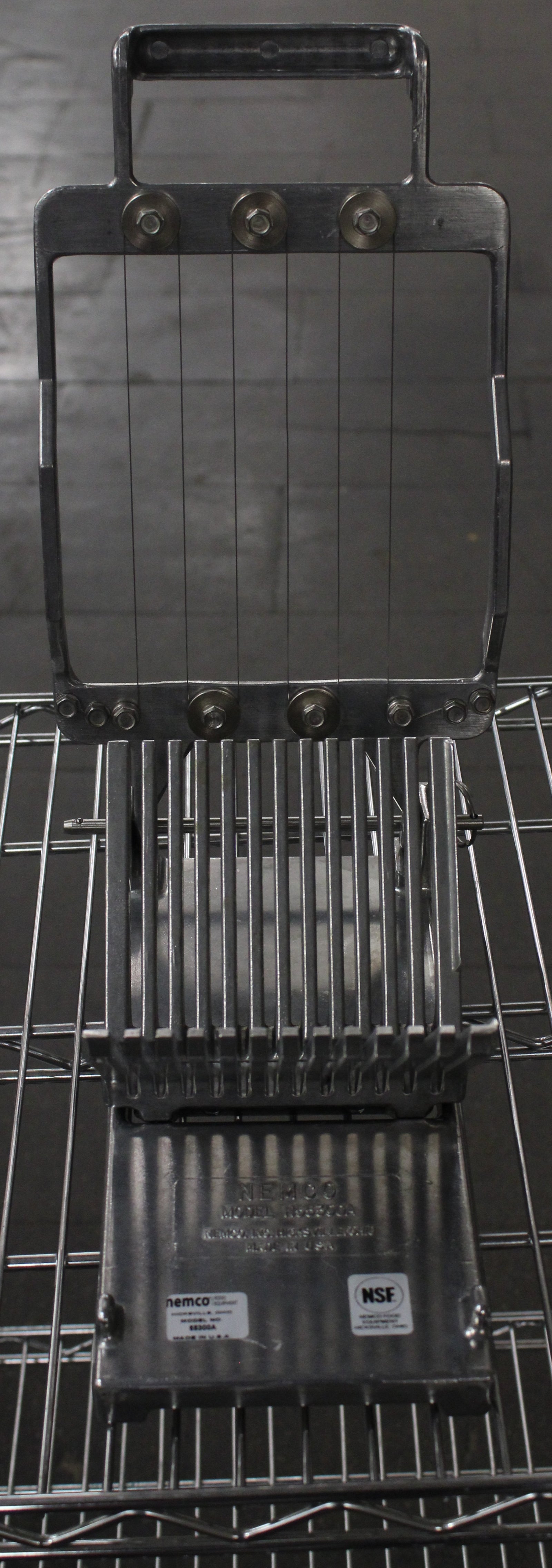 The Nemco 55300A-1 Easy Cheese Cutter is durable and easy to use. It has a steel construction for increased endurance and longevity. The cutting wires are made of stainless steel and are easy to replace. The easy-to-use slicing arm is designed to slide right through cheese of any thickness or density. The 55300A-1 is perfect for cutting 3/8" slices. The cutting area accommodates 1/3 of a 5 lb. cheese load.