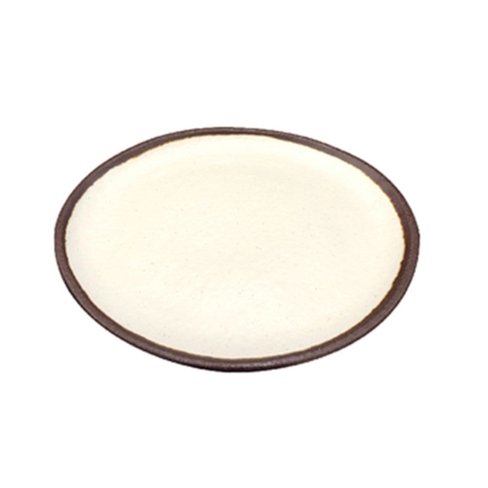 NSF certified for commercial foodservice applications, the G.E.T. Enterprises P-75-CRM is a BPA-free dinner plate. Made of melamine, it is break-resistant and dishwasher safe. It comes in cream with brown trim.
