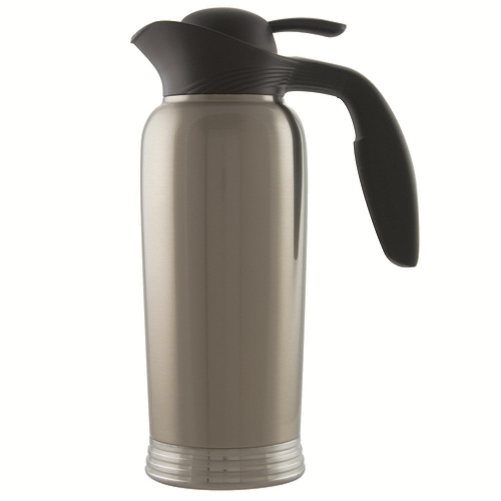 Service Ideas ErgoServ series offers quality beverage service equipment. This 10-00744-000 holds 1 liter of creamer. It has a stainless steel exterior, double wall vacuum insulation, and a complimentary black lid. The no-drip lip enables employees and guests to pour drinks without spills and drips. With its brushed finish, it works well for front-of-the-house applications. We recommend it, especially since it's dishwasher safe.