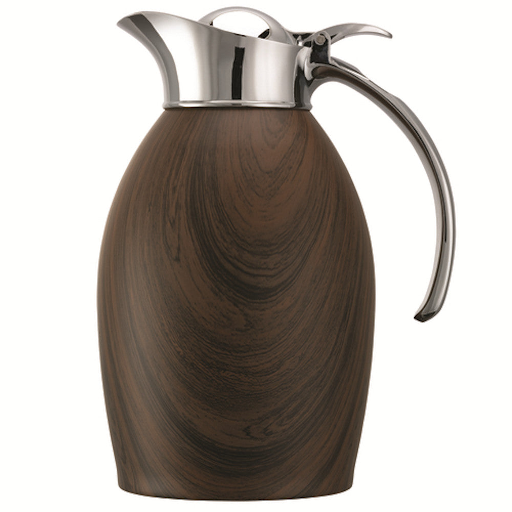 The Service Ideas NIC10BSDW is a 1-liter beverage server. It retains product temperature and quality for 4 to 6 hours thanks, in part, to its vacuum insulation. It is engineered from 18/8 stainless steel. It has an attractive hydro-dripped dark wood finish. The NIC10BSDW is not dishwasher safe; must be hand washed only.