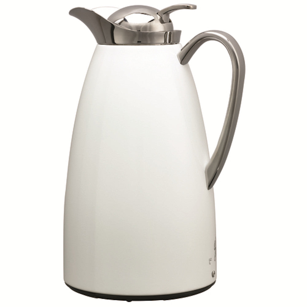 The Service Ideas CJZ1WHT is a 1 liter Classy vacuum carafe. It has a stainless steel construction and an attractive white powder coat finish. It has a convenient push button lid. The CJZ1WHT comes with a decaf indicator sock for ease of operation.