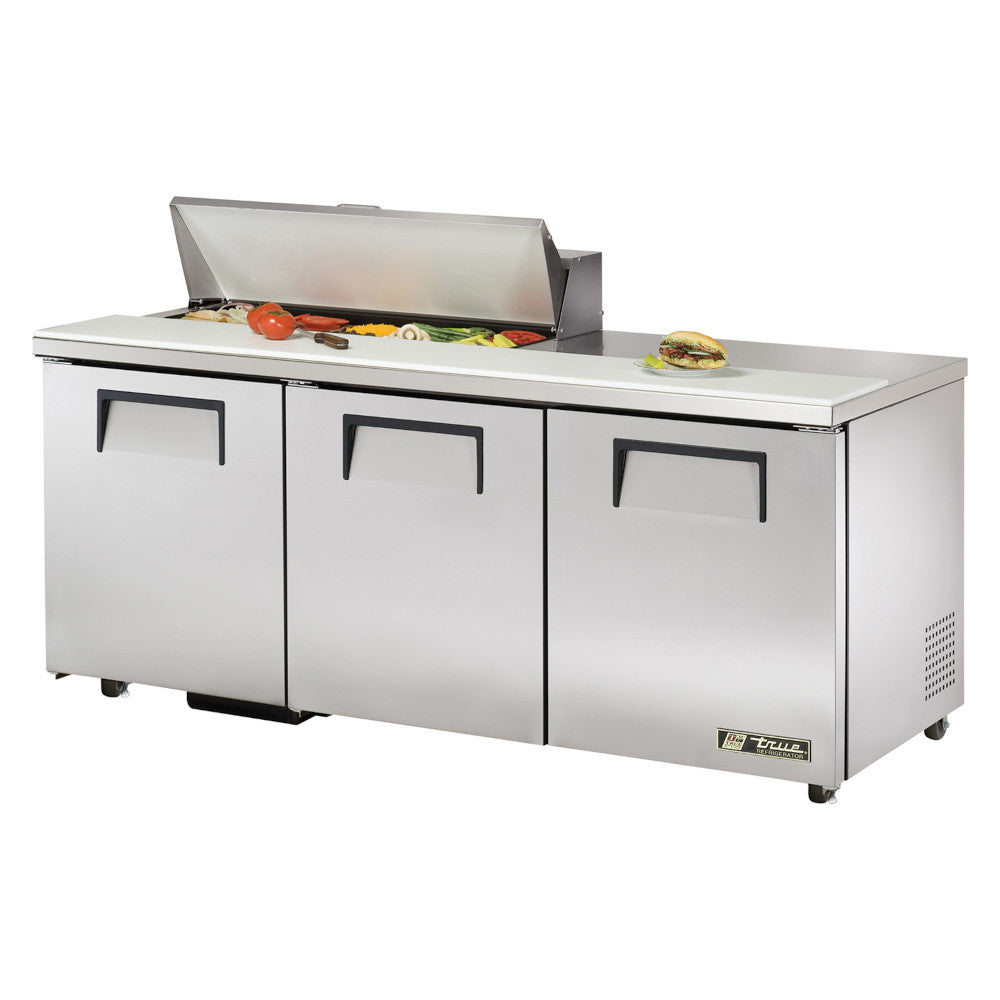 The True TSSU-72-10-ADA-HC salad/sanwich unit is designed with enduring quality that protects your long term investment. True’s commitment to using the highest quality materials and oversized refrigeration systems provides the user with colder product temperatures, lower utility costs, exceptional food safety and the best value in today’s food service marketplace. Factory engineered, self-contained, capillary tube system using environmentally friendly R290 hydrocarbon refrigerant that has zero (0) ozone depletion potential (ODP), & three (3) global warming potential (GWP). Comes standard with 10 (1/6 size) 6-7/8"L x 6-1/4”W x 4"D (175 mm x 159 mm x 102 mm) clear polycarbonate, NSF approved, food pans in countertop prep area. Also accommodates 6" (153 mm) deep food pans (supplied by others).