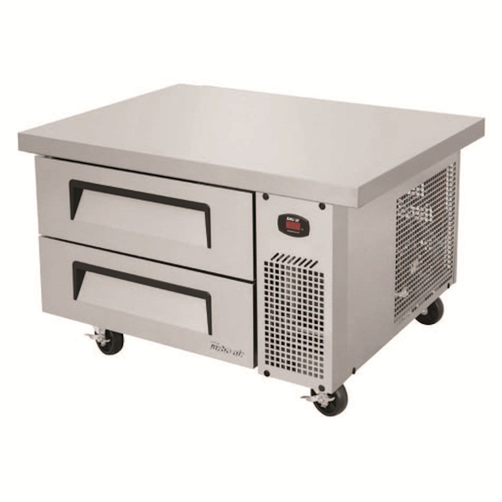 This Turbo Air TCBE-36SDR-N6 36" Two Drawer Super Deluxe Refrigerated Chef Base is efficient, durable, and easy to maintain. Its self-contained refrigeration system uses environmentally friendly R290 Hydrocarbon refrigerant to hold items at the best temperatures for food preservation. Keeping items at 33°F to 38°F, it uses efficient evaporators and condensers for faster cooling. Its side mounted compressor is easy to service, while its front breathing feature allows it provide high efficiency even in narrow spaces.