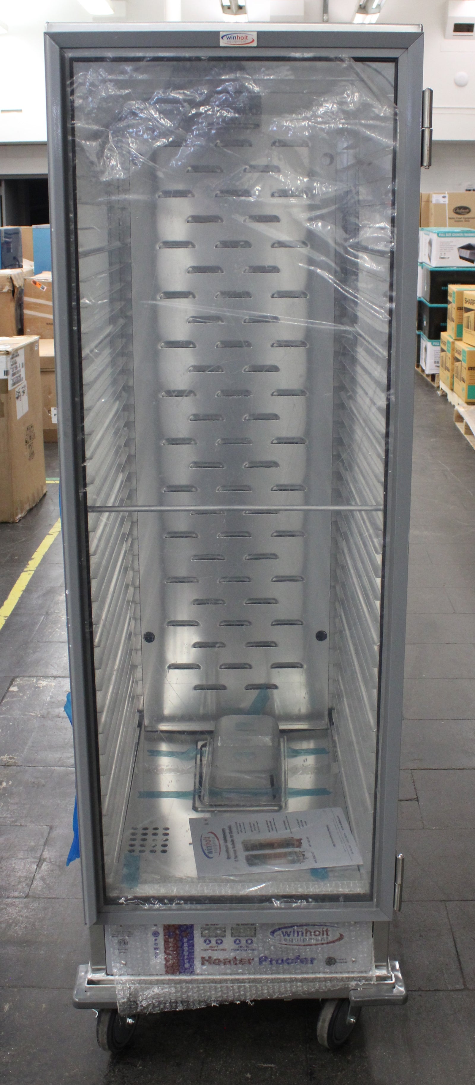 Constructed of heavy-duty aluminum, this Winholt INHPL-1836C-DGT Mobile Proofer Cabinet is ideal for use in a variety of commercial environments. It is completely mobile with four swivel plate casters. The two front casters have brakes so the unit will stay in place once stopped. It has a drip trough to catch condensation and an internal water pan to collect condensation when used in proofer mode. The INHPL-1836C-DGT has two separate modes. A proof/humidity mode and heat mode. The proof/humidity mode can reach up to 95% RH at 110°F while the heat mode reaches a maximum temperature of 180°F.